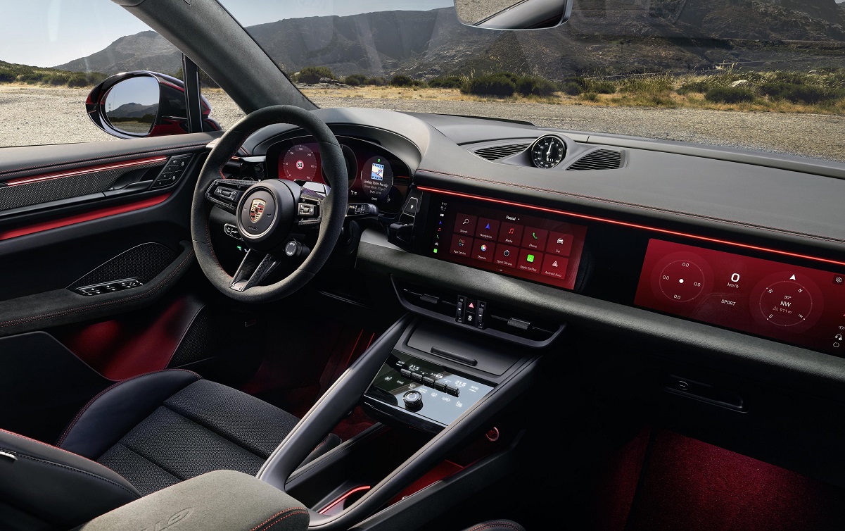 В салоне адаптивные спортивные сиденья с 18-позиционной регулировкой. Отделка выполнена из ткани Race-Tex и чёрной кожи. Можно выбрать строчку в цвет кузова. У цифровой приборной панели особая графика. В оснащение вошли цифровой ключ, новые функции помощи при парковке, голосовой помощник на базе искусственного интеллекта.